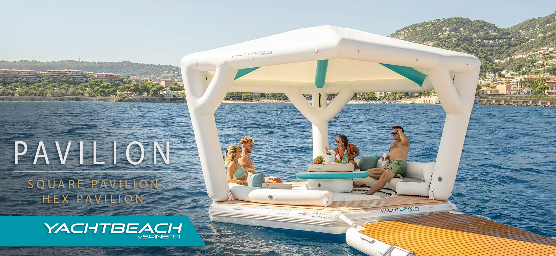 Die Pavilion-Linie ist in drei exklusiven Designs erhältlich: Square Pavilion 4.10, Square 3.08 und Hex Pavilion. Jede Variante verbindet elegantes Design mit raffinierter Funktionalität – für unvergessliche Momente auf dem Wasser oder am Strand.